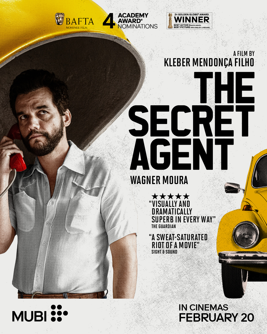 From acclaimed director Kleber Mendonça Filho, THE SECRET AGENT is a gripping, mischievous political thriller that entertains as much as it provokes. Wagner Moura stars in a Best Actor–winning performance as Marcelo, a father on the run from a mysterious past amid the vibrant cultural landscape of 1970s Brazil. Arriving in Recife during Carnival, he is swept into a dizzying world of colour, commotion, and secrets. A global awards contender – THE SECRET AGENT heralds a bold new chapter in Brazilian cinema.